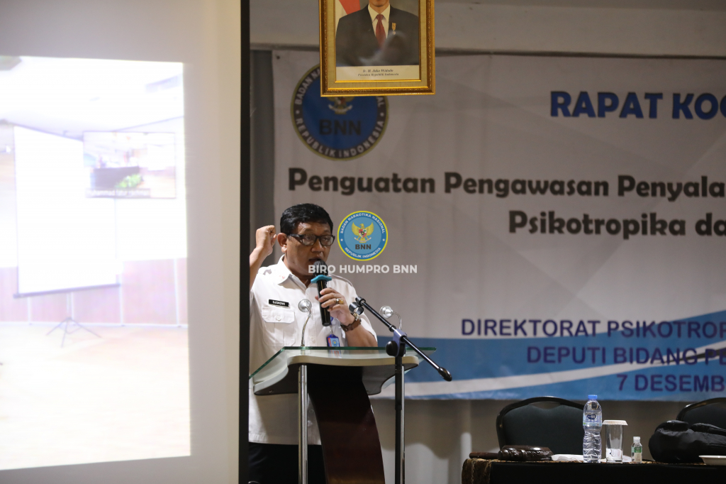 Direktorat Psikotropika dan Prekursor Narkotika (P2) Deputi Bidang Pemberantasan Badan Narkotika Nasional (BNN) menggelar rapat koordinasi dengan stakeholder dan komponen masyarakat guna membahas penguatan dan pengawasan distribusi psikotropika dan obat keras (Daftar G) dari penyalahgunaan dan peredaran gelap psikotropika, di Best Western The Premier The Hive, Jakarta Timur, Selasa (7/12).