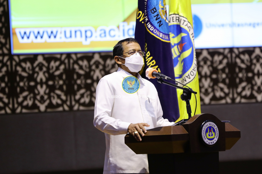 Kepala BNN memberikan Kuliah Umum, sekaligus melaunching Kampus Bersinar di Universitas Negeri Padang, Kamis (10/2).