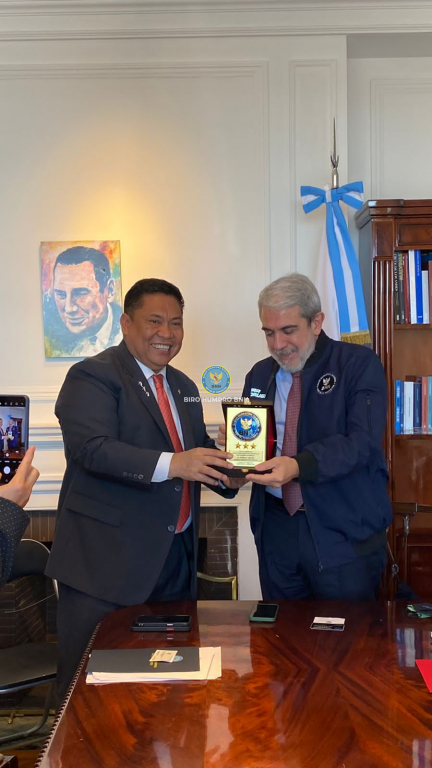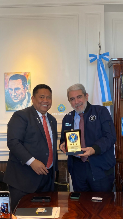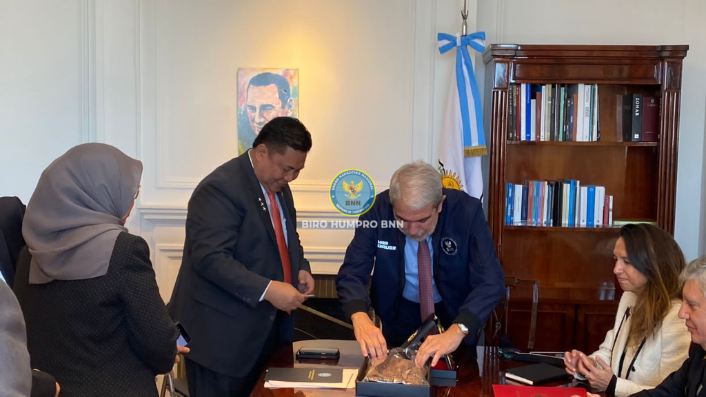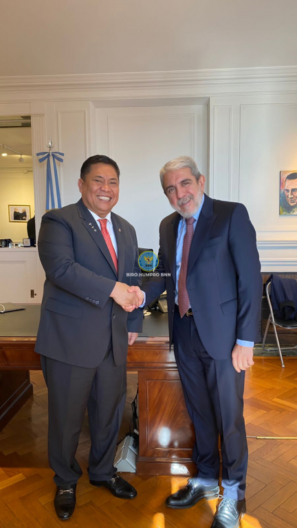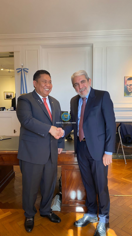 kunjungan kerja Kepala BNN RI, Dr. Petrus Reinhard Golose ke Argentina untuk membahas langkah strategis dalam upaya perang melawan narkoba, Kepala BNN RI bertemu langsung dengan Menteri Keamanan Argentina, Dr. Anibal Domingo Fernandez, di Buenos Aires