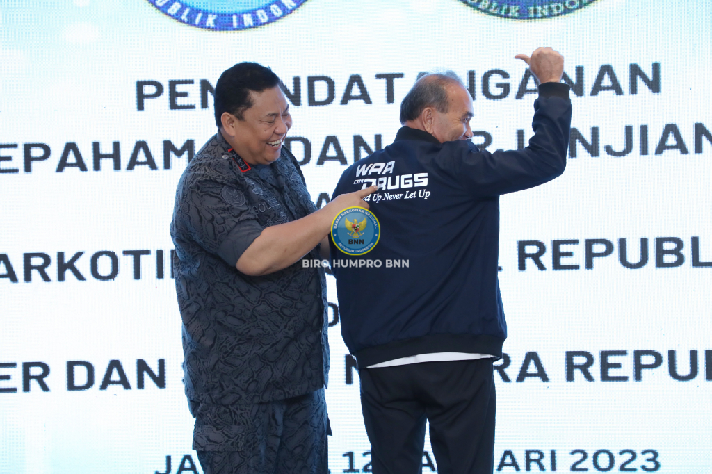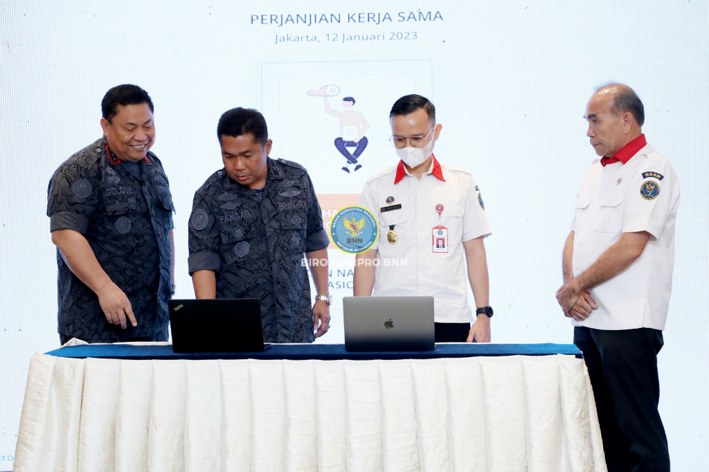 Kepala BNN RI, Dr. Petrus Reinhard Golose meluncurkan secara resmi E-Mindik BNN versi 2.0 di Hotel Gran Melia, Jakarta, Kamis (12/1). Kepala BNN RI juga melaksanakan penandatanganan Nota Kesepahaman tentang Perlindungan Informasi dan Transaksi Elektronik Dalam Upaya Pencegahan dan Pemberantasan Penyalahgunaan dan Peredaran Gelap Narkotika dan Prekursor Narkotika (P4GN) dengan Kepala Badan Siber dan Sandi Negara (BSSN), Letnan Jenderal TNI (Purn), Hinsa Siburian.
