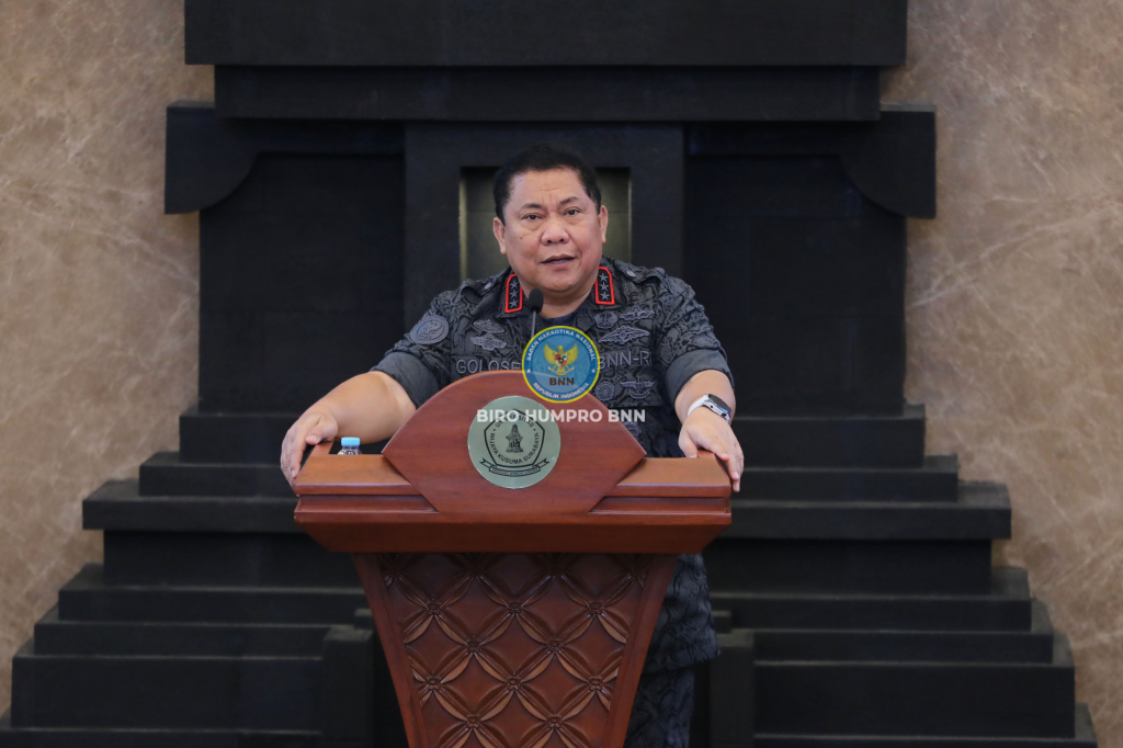 Kepala Badan Narkotika Nasional Republik Indonesia (BNN RI), Dr. Petrus Reinhard Golose, memberikan kuliah umum kepada mahasiswa Universitas Wijaya Kusuma Surabaya (UWKS) yang diikuti secara hybrid oleh lebih dari 500 orang baik secara luring maupun daring, di Bangsal Poncowaliko UWKS, Surabaya, Jawa Timur, pada Jumat (27/1).