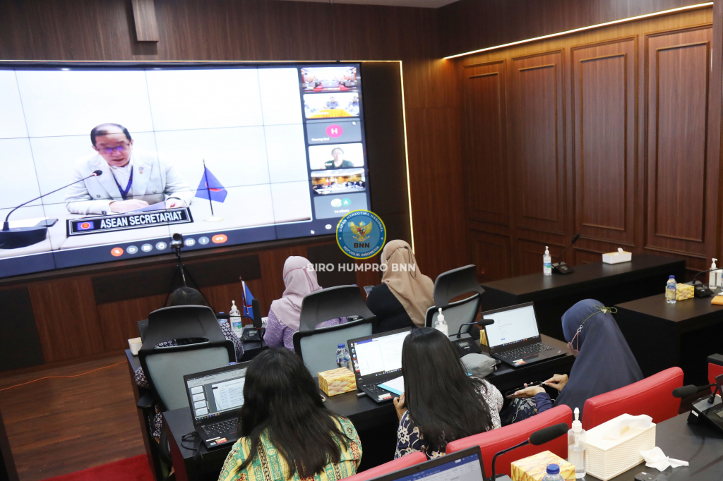 BNN RI, sebagai salah satu focal point ASEAN Senior Officials Meeting On Drug Matters (ASOD), mengikuti kegiatan Workshop terkait pengembangan projek kerja sama dalam rangka penanggulangan narkoba di ASEAN, melalui video conference, di Ruang Hoegeng Gedung BNN RI, pada Kamis (2/2/2023).
