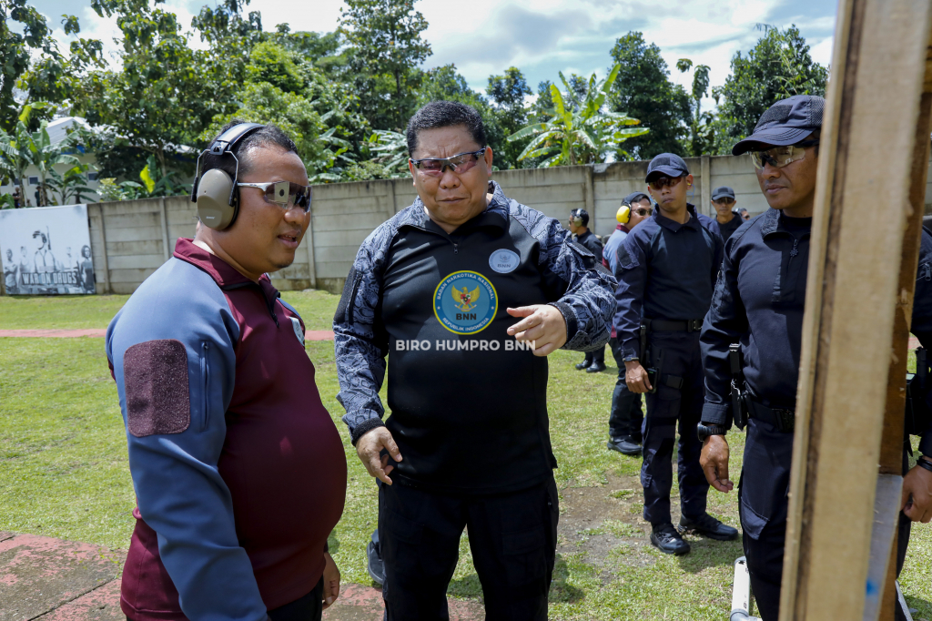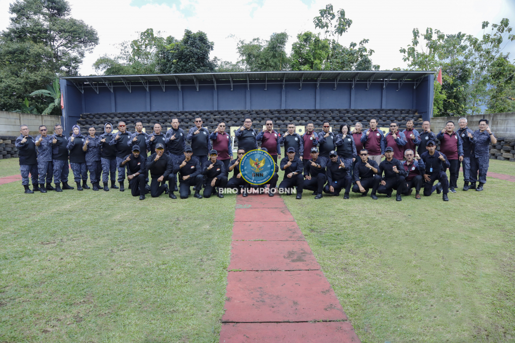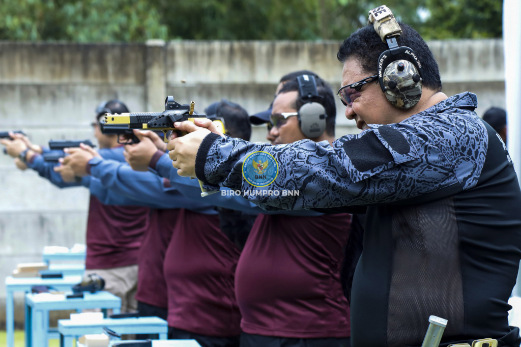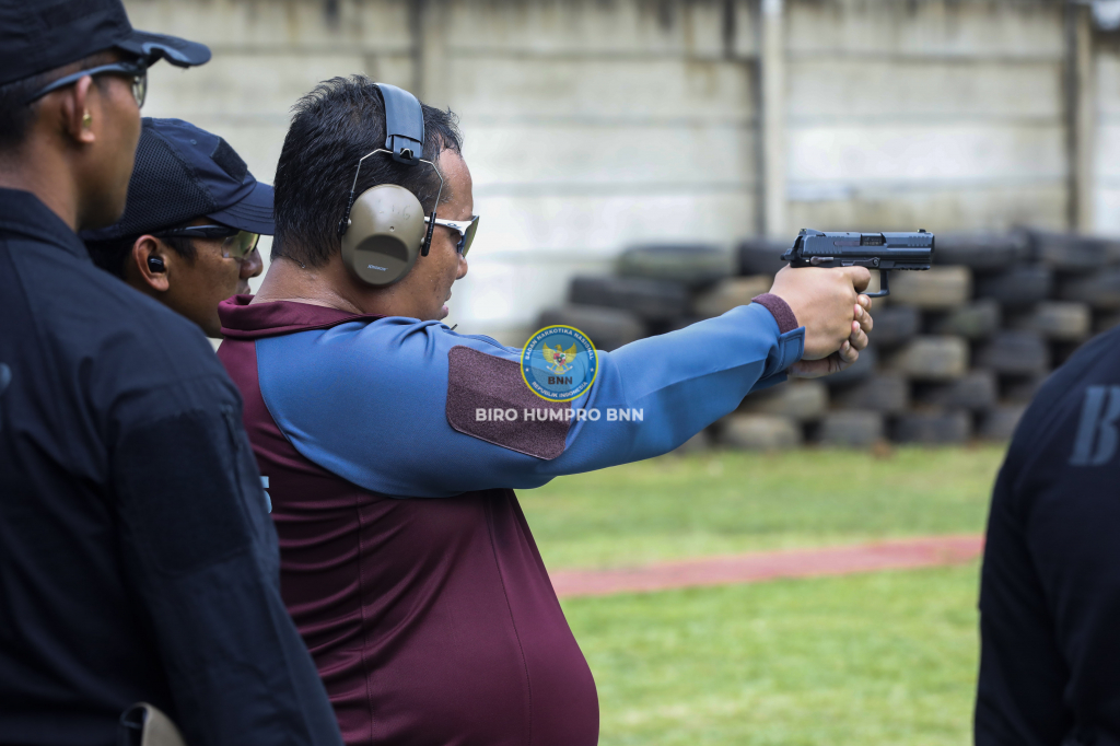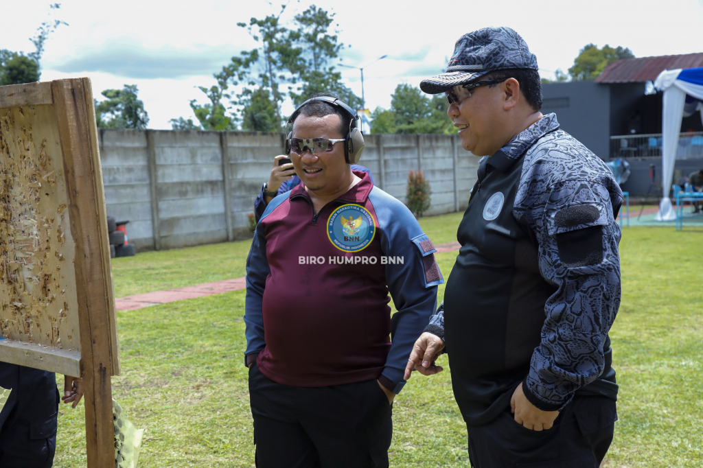 BNN RI bersama BPK RI melakukan latihan bersama menembak yang dilaksanajan di Pusat Pelatihan Sumber Daya Manusia BNN RI Lido, Bogor