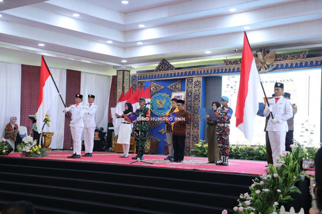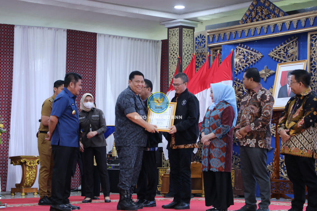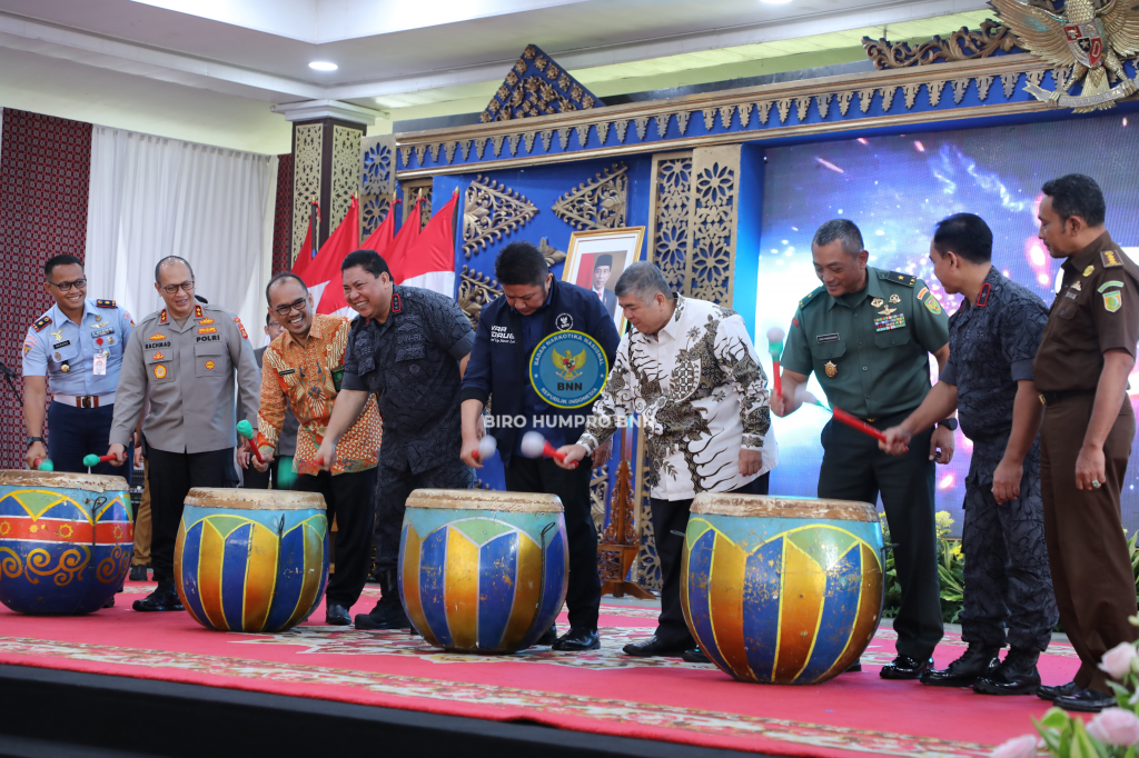 BNN dan Pemprov Sumsel Kolaborasi Launching Perkebunan Bersinar dan Desa Tematik Bersinar Dua kunci dalam penanganan narkotika yaitu menekan supply dan demand. Keduanya dilakukan Badan Narkotika Nasional RI melalui pendekatan soft power, hard power, smart power, dan cooperation. Hal tersebut diungkapkan Kepala BNN RI, Dr. Petrus Renhard Golose dalam launching perkebunan Bersinar dan Desa Wisata Tematik Bersinar, Kamis (2/3) di Griya Agung, Palembang. Kepala BNN menyampaikan apresiasi kepada Pemprov Sumsel atas komitmennya dalam mengatasi permasalahan narkotika dengan mengajak seluruh elemen masyarakat, termasuk pendeklarasian 147 perkebunan Bersinar dan desa wisata tematik Bersinar. Di hadapan Gubernur Sumatera Selatan H. Herman Deru, S.H., M.M., jajaran Forkopimda Tingkat I dan II, serta seluruh Bupati/Walikota se-provinsi Sumatera Selatan, Dr. Petrus Reinhard Golose juga menyampaikan apresiasi atas diskresi yang dibuat oleh Gubernur Sumsel yang melarang remix dalam organ tunggal yang kerap menjadi wadah peredaran narkotika. "Saya mendapat banyak laporan terkait organ tunggal yang sering ditunggangi oleh para pengedar narkoba, sehingga larangan yang dibuat oleh Pak Gubernur terkait remix dalam organ tunggal merupakan diskresi yang amat sangat luar biasa," tutur Dr. Petrus Reinhard Golose. Sementara itu, Gubernur Sumatera Selatan dalam sambutannya mengucapkan terima kasih kepada BNN dan BNNP Sumatera Selatan atas kolaborasi yang dibangun dalam mewujudkan Sumatera Selatan bersih narkoba. "Ini adalah tugas mulia sekali yang digagas oleh BNN khususnya BNNP Sumsel, dan saya mengingatkan kepada seluruh pemangku kebijakan di Sumsel untuk waspada terhadap peredaran gelap dan penyalahgunaan narkoba," ujar H. Herman Deru, S.H., M.M. Biro Humas dan Protokol BNN RI