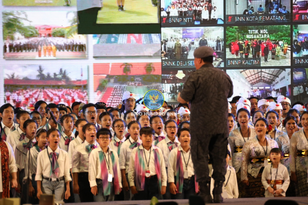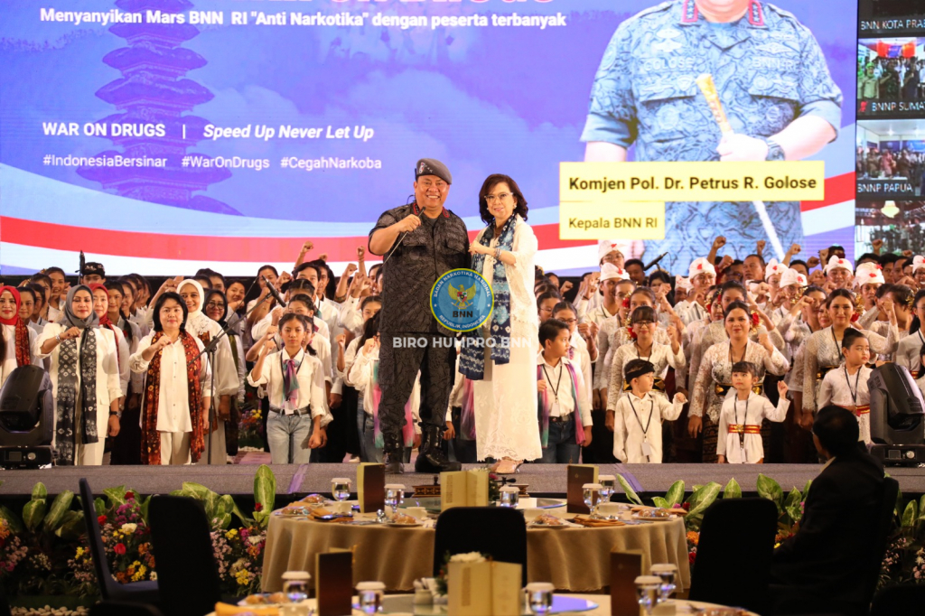 Badan Narkotika Nasional Republik Indonesia (BNN RI) gemakan War On Drugs ke seluruh penjuru negeri lewat lantunan Mars BNN bertajuk "Anti Narkotika" yang dinyanyikan secara hybrid, oleh 3,6 juta orang di Bali Nusa Dua Convention Center, Nusa Dua, Bali, pada Selasa (7/3).