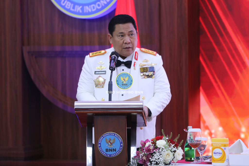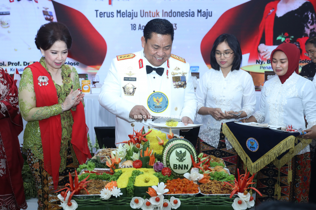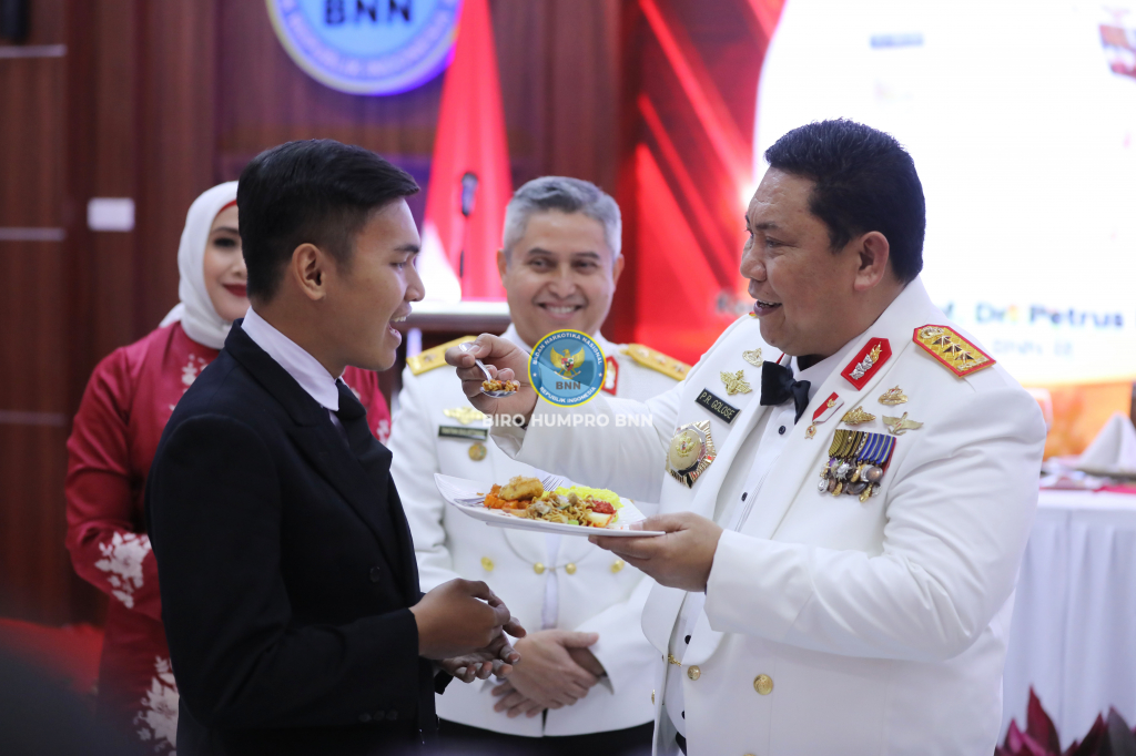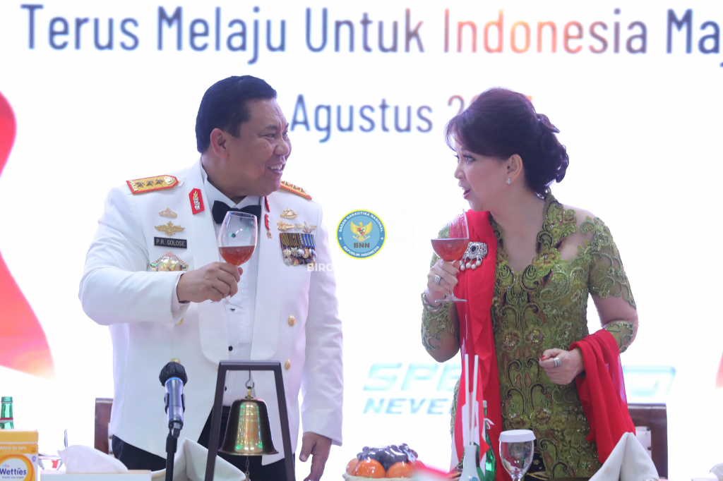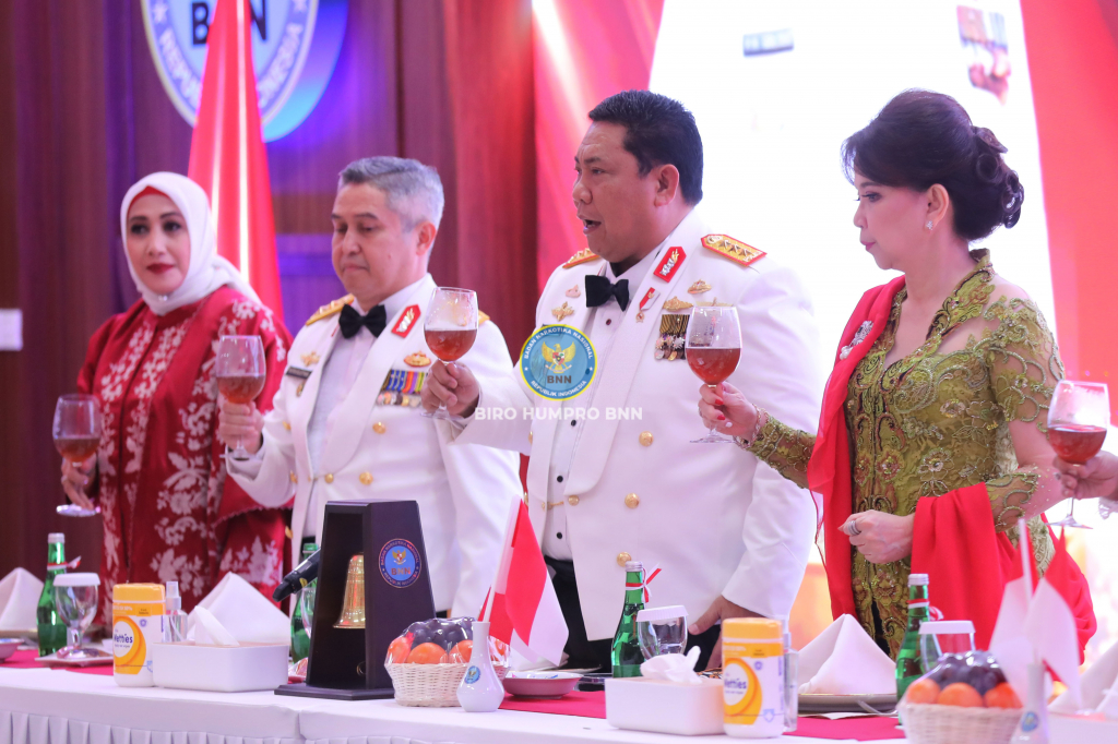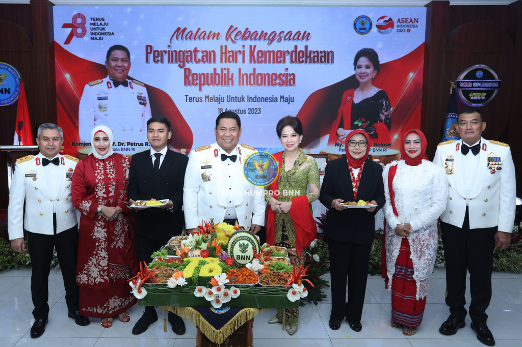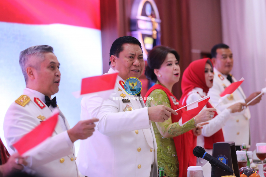 Kepala BNN RI, Prof. Dr. Petrus Reinhard Golose, pimpin acara Malam Kebangsaan yang digelar BNN RI di Gedung BNN, Cawang, Jakarta Timur, Jumat (18/8).
