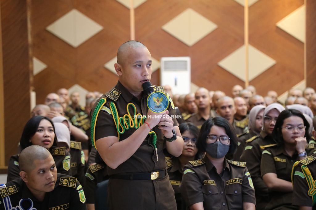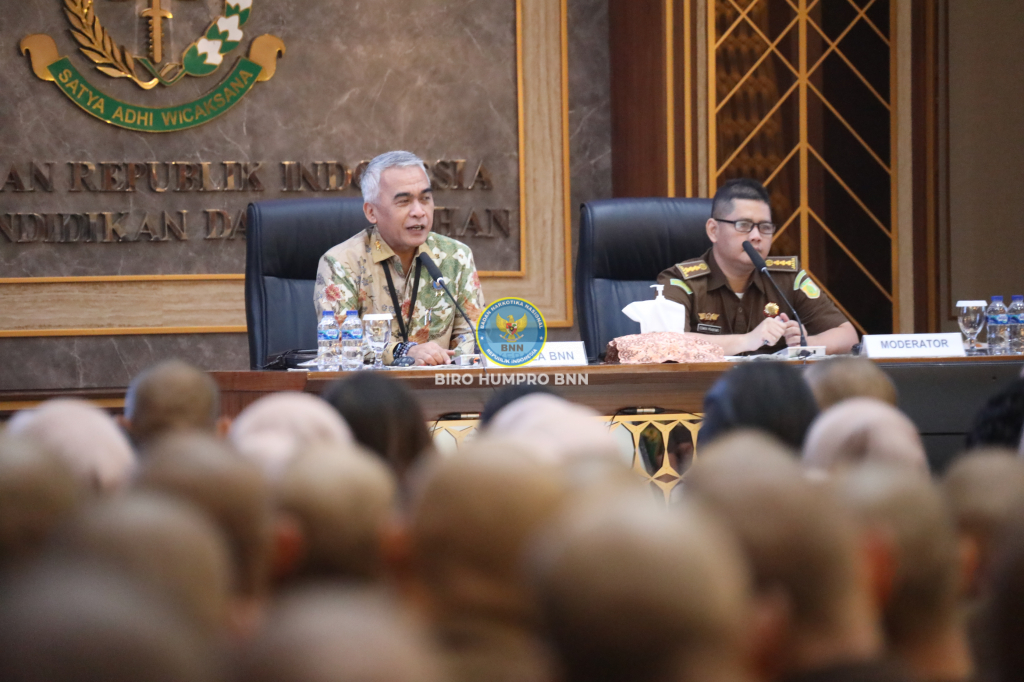 Deputi Hukum dan Kerja Sama Badan Narkotika Nasional (BNN) Republik Indonesia, Irjen Pol. Drs. Agus Irianto, S.H., M.Si., M.H., Ph.D., memberikan kuliah umum pada program Pendidikan dan Pelatihan Calon Jaksa (PPJ) Gelombang I Angkatan 80 dengan peserta calon Jaksa sebanyak 398 orang di Aula orw Jakarta, pada hari Selasa (12/9).