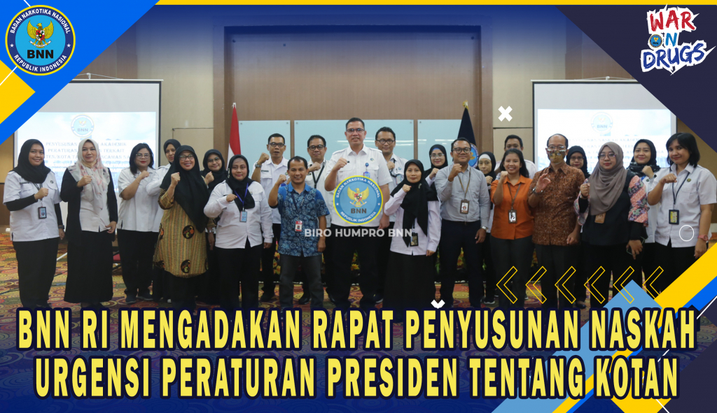 BNN RI Mengadakan Rapat Penyusunan Naskah Urgensi Peraturan Presiden Tentang Kabupaten/Kota Tanggap Ancaman Narkoba. Untuk mendukung dan menyukseskan program Kabupaten/Kota Tanggap Ancaman Narkoba (KOTAN), BNN RI menyusun naskah urgensi Peraturan Presiden sebagai langkah awal pembentukan Peraturan Presiden, maka Direktorat Peran Serta Masyarakat BNN RI mengadakan rapat penyusunan Naskah urgensi Peraturan Presiden Kabupaten/Kota Tanggap Ancaman Narkoba, yang diadakan pada 4 - 5 oktober 2023 di Hotel Horison Ultima Bekasi. Tujuan diadakannya penyusunan Peraturan Presiden tentang kotan ini adalah untuk meningkatkan komitmen pemerintah pusat, pemerintah daerah, akademisi, masyarakat, dunia usaha, dan media di kabupaten/kota dalam upaya mewujudkan sistem ketanggapsiagaan ancaman narkoba, mengimplementasikan kebijakan terkait melalui perumusan strategi perencanaan pembangunan kabupaten/kota secara terencana, menyeluruh, dan berkelanjutan sesuai dengan indikator sistem ketanggapsiagaan ancaman narkoba, serta memperkuat peran dan kapasitas pemerintah pusat, kabupaten/kota dalam mewujudkan pembangunan di bidang pertahanan dan keamanan. Kegiatan ini dibuka oleh Plt Direktur Hukum BNN RI Toton Rasyid, S.H., M.H., dan dihadiri peserta yang terdiri dari Kemenkumham, Kemensetneg, Kemenpppa, Kemendagri, Kemenpora, Kemenpolhukam, Kemendes dan BNN RI, Rabu, (4/10). Dalam sambutannya, Toton memberikan arahan bahwa kegiatan hari ini adalah penyusunan naskah urgensi untuk pengajuan Peraturan Presiden tentang KOTAN. Peraturan Presiden ini akan menjadi prioritas, hal ini sejalan dengan rapat terbatas yang diadakan oleh Presiden pada tanggal 11 September lalu terkait dengan Extra Ordinary Crime Narkotika, yang dipastikan kedepan tindakan Pemerintah akan lebih masif. “Maka dari itu dengan adanya perhatian dari presiden yang sangat luar biasa, maka akan kita ajukan. Harapan saya penyusunan naskah urgensi semoga segera jadi, apakah naskah ini sudah dibuat sedemikian rupa, bagaimana modelnya setidaknya kita bisa bicarakan secara teknis nanti. Yang tadinya kita punya peraturan badan, akan kita tingkatkan menjadi perpres yang nantinya bisa lebih mengikat kepada semua kementerian/lembaga dan pemerintah daerah." Ungkap Toton mengakhiri sambutannya. Rekomendasi dari kegiatan ini Evaluasi Kebijakan kotan terkait dengan implementasi, variabel dan indikator tentang kotan dalam bentuk kajian, Tim akan menyempurnaan draft rancangan peraturan presiden dan naskah urgensi, Pengajuan penetapan kebijakan kotan melalui peraturan presiden dengan mekanisme Izin Prakarsa disampaikan setelah adanya kesepakatan di internal dan kementerian Lembaga terkait (menyertakan naskah urgensi, rancangan perpres dan lampiran data dukung)