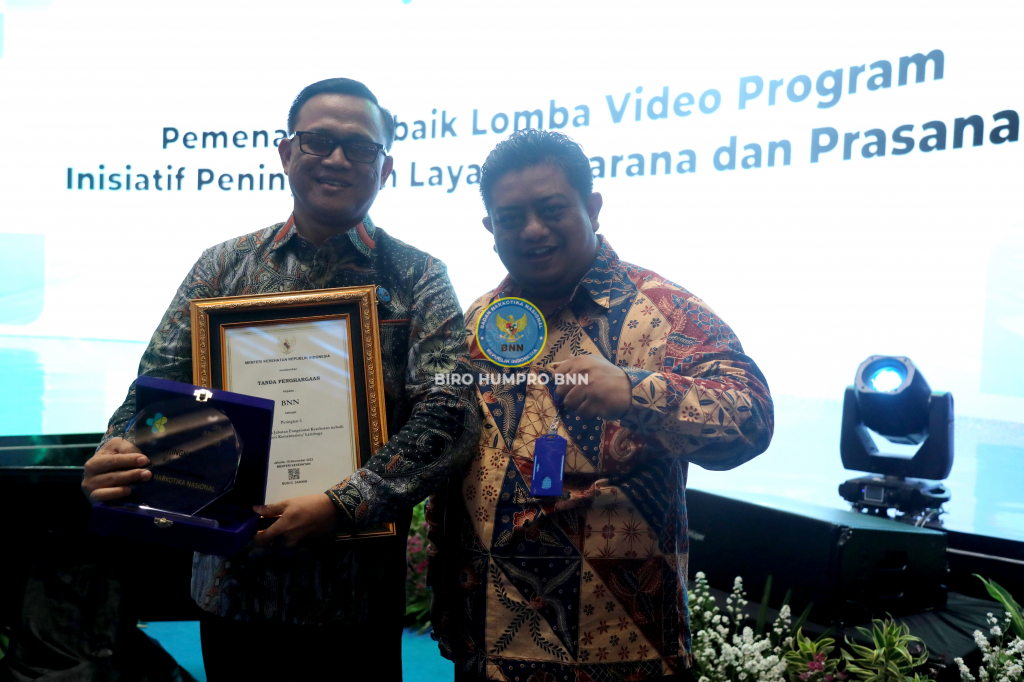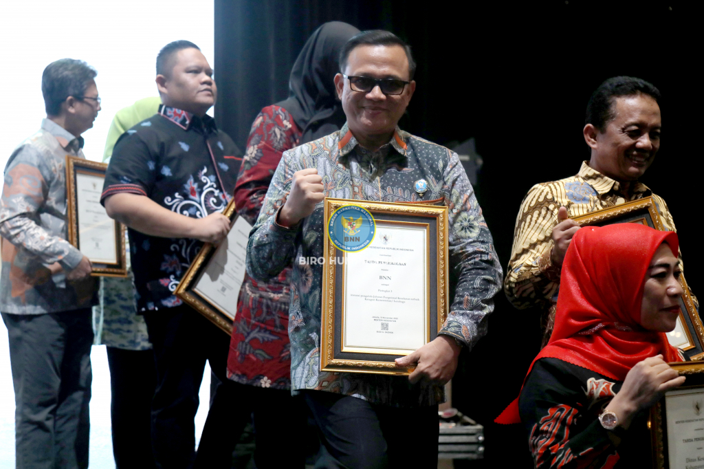 Badan Narkotika Nasional Republik Indonesia (BNN RI) meraih penghargaan Jabatan Fungsional Kesehatan atau JFK Awards 2023 dalam rangka Hari Kesehatan Nasional ke-59 dari Kementerian Kesehatan (Kemenkes).