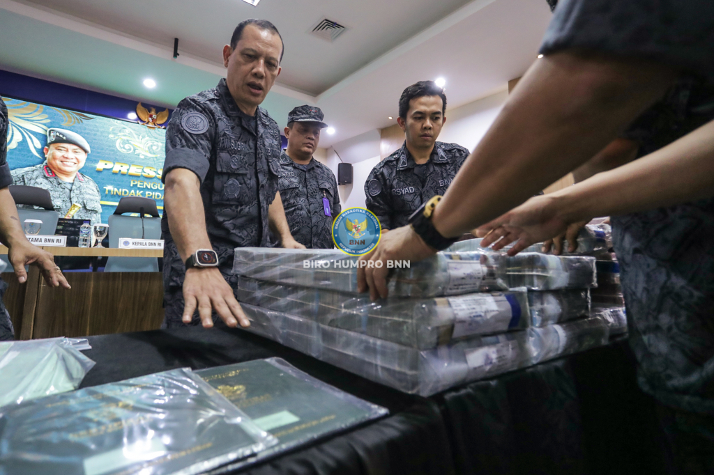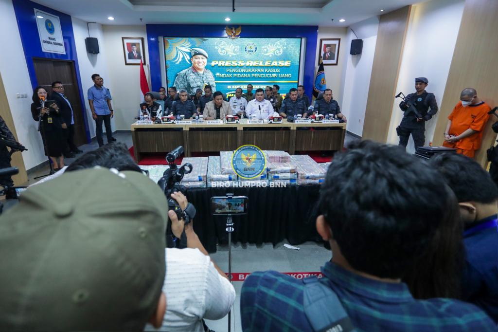 Press Release Tindak Pidana Pencucian Uang senilai 80 Miliar yang disampaikanoleh Kepala BNN Prof. Dr. Petrus R. Golose didahapan para awak media