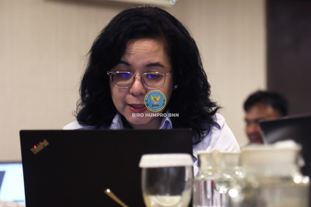 Direktur Penguatan Lembaga Rehabilitasi Komponen Masyarakat Deputi Bidang Rehabilitasi BNN RI, dr. Amrita Devi, Sp.K.J., M.Si membuka Kegiatan Evaluasi Pemenuhan SNI Target Reguler di Lembaga Rehabilitasi Milik BNN dan Mitra BNN Sesuai SNI 8807:2022 Tahun 2023 secara Virtual di Fave Hotel, Jakarta, Rabu (6/12).