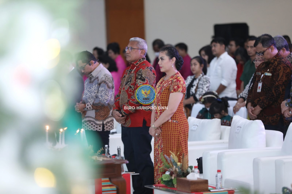Kepala BNN RI, Marthinus Hukom, S.I.K., M.Si. beserta Istri Ny. Rita M. Hukom menghadiri Ibadah dan Perayaan Natal Lembaga Kepresidenan tahun 2023 bertempat di Gedung Krida Bhakti Kemensetneg, Jakarta (12/1).