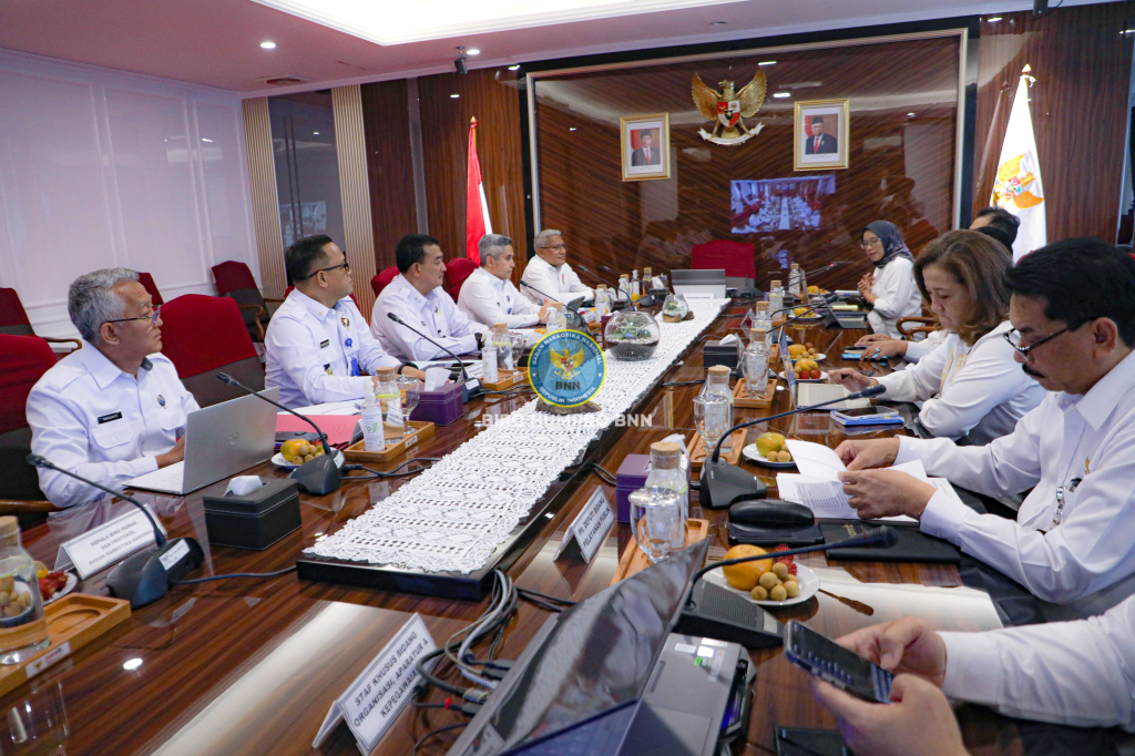 Kepala BNN RI Martinus Hukom, S.I.K., M.Si didampingi oleh Sekretaris Utama, Inpektur Utama, Kepala Biro SDMA, Kepala Biro Perencanaan dan Kepala Biro Humas dan Protokol melakukan audiensi ke Menteri PAN & RB di Jakarta, Senin (15/1)