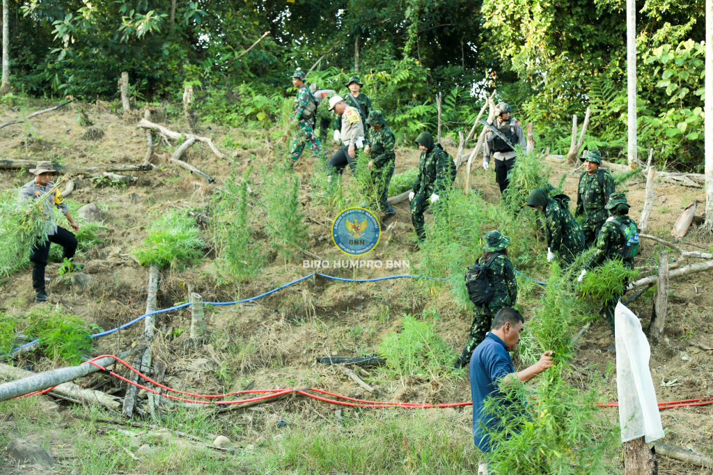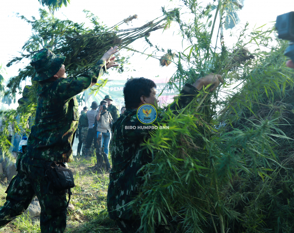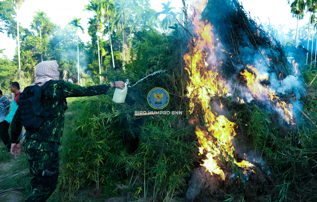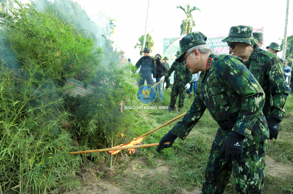 adan Narkotika Nasional Republik Indonesia (BNN RI) menggelar pemusnahan lahan ganja di wilayah Aceh Utara, Provinsi Aceh, pada Selasa (23/1). Hal ini merupakan komitmen BNN RI sebagai leading institution dalam Pencegahan dan Pemberantasan Penyalahgunaan dan Peredaran Gelap Narkotika dan Prekursor Narkotika (P4GN) untuk melindungi masyarakat dan Negara Kesatuan Republik Indonesia dari ancaman narkotika.
