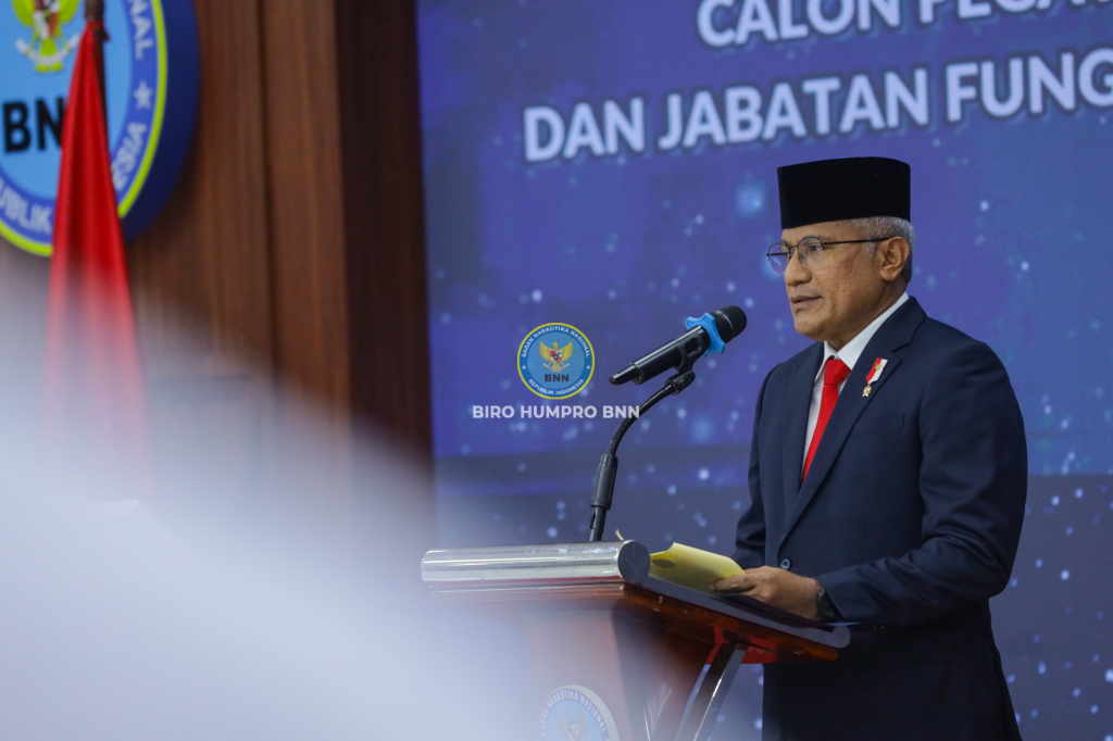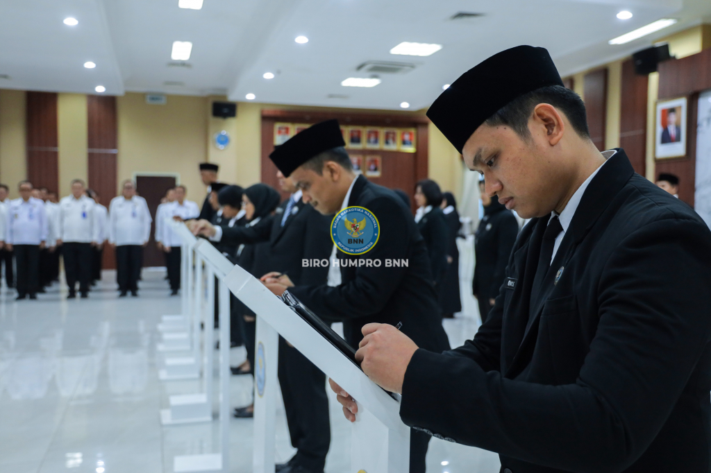 Kepala BNN RI marthinus Hukom S.I.K., M.Si melantik 57 pegawai Calon Pegawai Negeri Sipil (CPNS) sebagai Pegawai Negeri Sipil (PNS) dan Jabatan Fungsional di Lingkungan BNN RI. Acara yang berlangsung di Kantor Pusat BNN RI, Cawang, Jakarta Timur