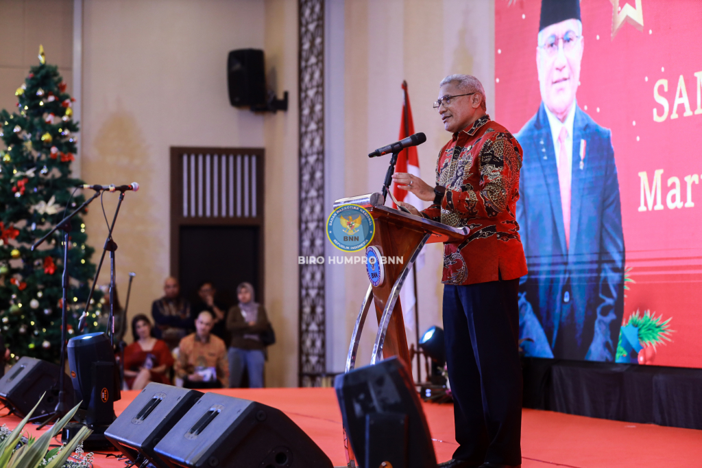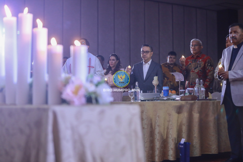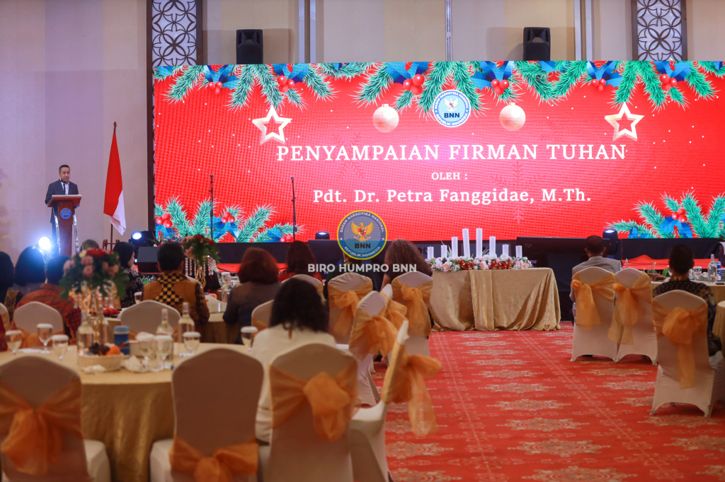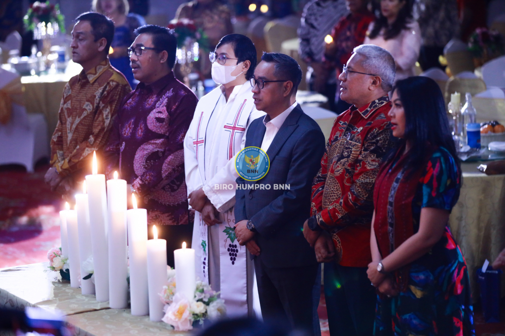 BNN RI menggelar Ibadah dan Perayaan Natal Tahun 2023 di Aston Kartika Grogol Hotel & Conference Center, Jakarta yang dihadiri Kepala BNN RI Martinus Hukom S.I.K., M.Si berserta Ibu Rita M. Hukom