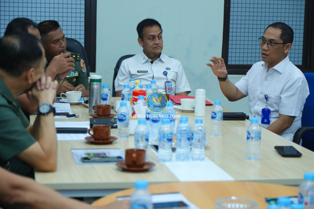 Kunjungan Tim Pokja Staf Ahli TNI AD ke BNN RI yang disambut oleh Direktur P2 beserta Direktur Intelijen Deputi Bidang Pemberantasan dan jajaran Deputi Hukum dan Kerja Sama BNN, serta jajaran Deputi Pemberdayaan Masyarakat BNN pada Rabu 7 Februari 2024