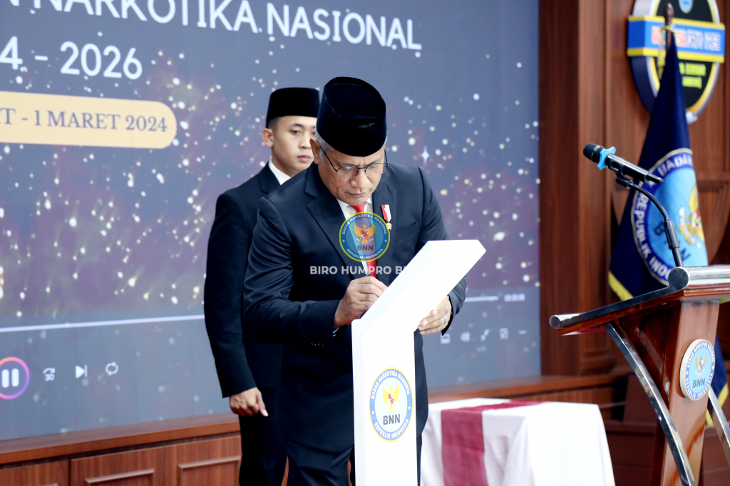 Kepala Badan Narkotika Nasional Republik Indonesia (BNN RI), Marthinus Hukom, S.I.K., M.Si., melantik 14 anggota kelompok ahli (Pok Ahli) BNN masa bakti 2024-2026, Jumat (1/3) di kantor BNN pusat, Jakarta.