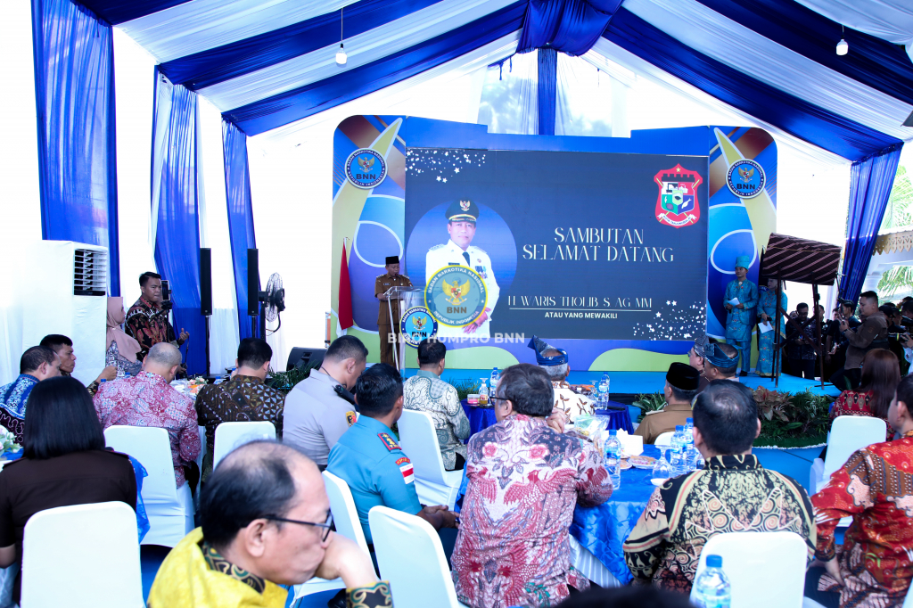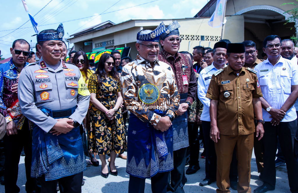 Kepala Badan Narkotika Nasional Republik Indonesia (BNN RI) Marthinus Hukom bersama para stakeholders melakukan prosesi Pencanangan Desa/Kelurahan Bersih Narkoba (Bersinar) di Kelurahan Selat Tanjung Medan, Tanjung Balai, Sumatera Utara, pada Rabu (24/4).