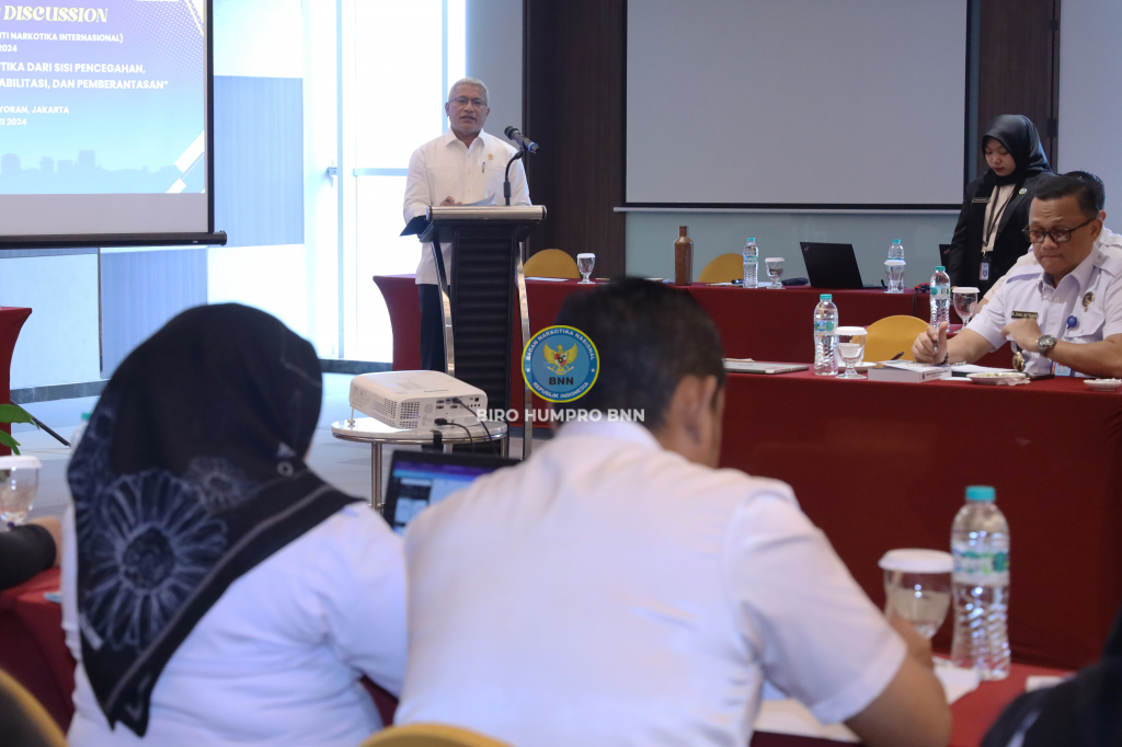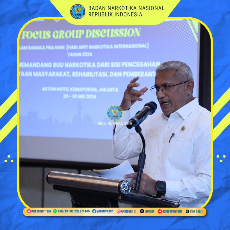 Kepala BNN RI, Marthinus Hukom., S.I.K., M.Si membuka kegiatan Forum Group Discussion (FGD) mengenai rancangan revisi Undang-Undang Nomor 35 Tahun 2009 tentang Narkotika di Hotel Aston, Kemayoran, Jakarta, Rabu (29/5).