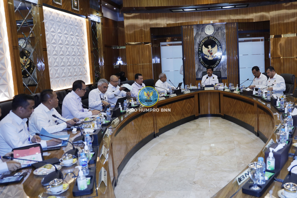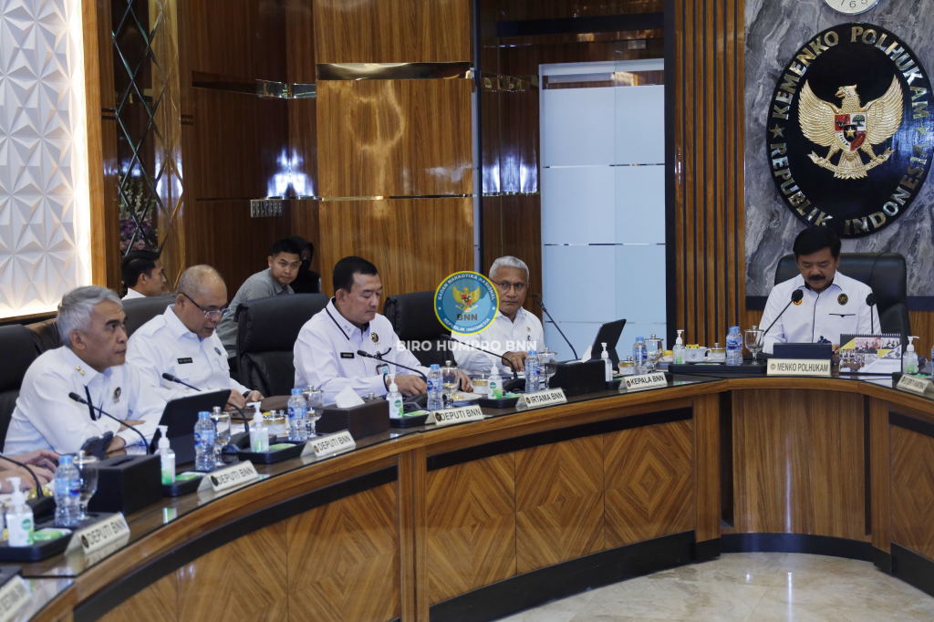 Kepala Badan Narkotika Nasional Republik Indonesia (BNN RI), Marthinus Hukom, S.I.K., M.Si., melakukan pertemuan dengan Menteri Koordinator Bidang Politik, Hukum, dan Keamanan (Menkopolhukam), Hadi Tjahjanto, di Kantor Kemenkopolhukam, Gambir, Jakarta Pusat, pada Rabu (19/6). Pertemuan ini dilakukan untuk membahas strategi dan kebijakan dalam pemberantasan narkotika di Indonesia.