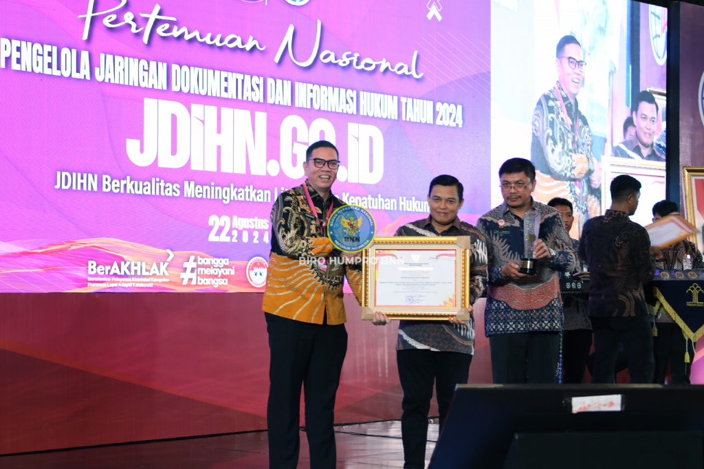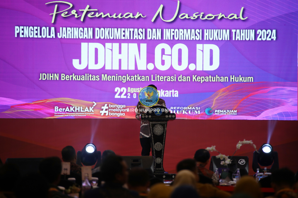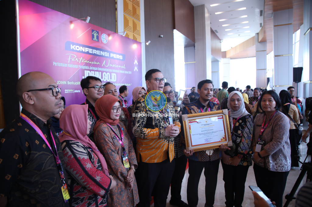 Direktur Hukum BNN RI menerima penghargaan JDIHN Awards Tahun 2024 oleh Kepala BPHN RI. bertempat di Hotel Aston Kartika, Jakarta. Kamis (22/8).