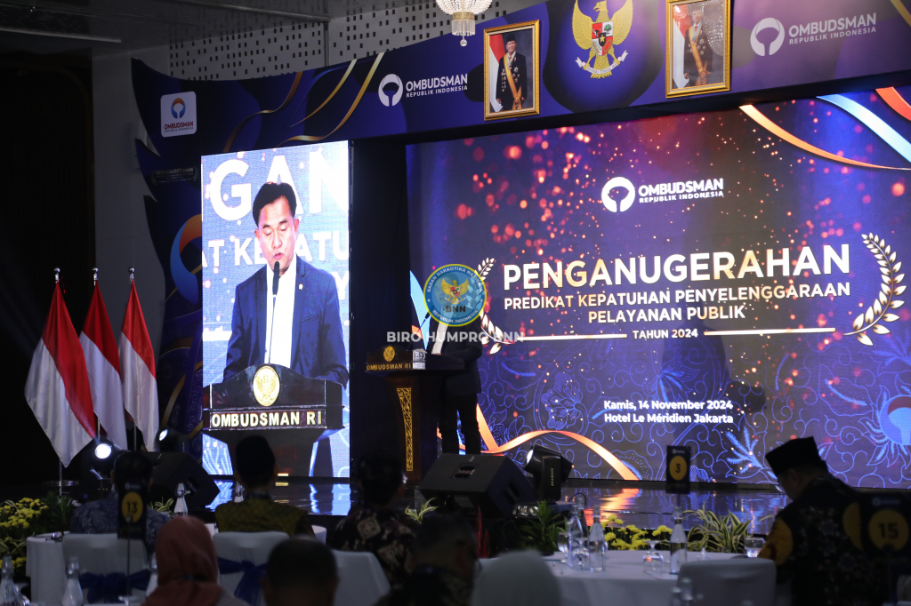 TOP 3, BNN RAIH PREDIKAT KUALITAS TERTINGGI DALAM PENILAIAN KEPATUHAN PENYELENGGARAAN PELAYANAN PUBLIK