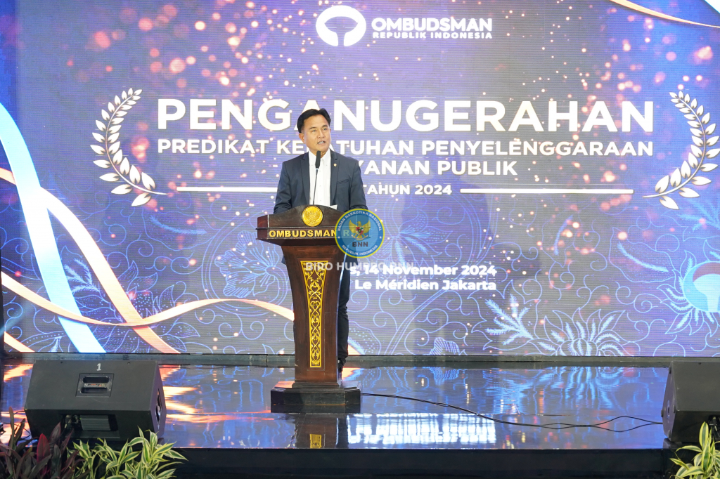 TOP 3, BNN RAIH PREDIKAT KUALITAS TERTINGGI DALAM PENILAIAN KEPATUHAN PENYELENGGARAAN PELAYANAN PUBLIK Badan Narkotika Nasional (BNN) meraih penghargaan sebagai lembaga dengan penilaian kepatuhan penyelenggaraan pelayanan publik kualitas tertinggi dalam acara Penganugerahan Predikat Kepatuhan Penyelenggaraan Pelayanan Publik Tahun 2024 yang diselenggarakan oleh Ombudsman Republik Indonesia di Hotel Le Meridien, Jakarta Pusat, pada Kamis (14/11). Berhasil meraih posisi Top 3, Kualitas Tertinggi terhadap kepatuhan standar pelayanan publik tahun 2024 dengan nilai 93,22 tersebut merupakan prestasi BNN yang signifikan jika dibandingkan dengan hasil penilaian tahun 2023, yaitu 78,42, dan hanya berhasil menduduki Top 9 pada kategori lembaga. Penganugerahan Ombudsman diterima langsung oleh Inspektur Utama BNN RI, Drs. Wahyono, M.H., CFrA., CGCAE, pada kesempatan tersebut. Prestasi ini merupakan bukti nyata komitmen BNN dalam memberikan pelayanan publik yang berkualitas dengan memperhatikan aspek pelayanan publik yang sesuai dengan standar yang telah ditetapkan. Ketua Ombudsman RI, Mokhammad Najih, dalam sambutannya menyampaikan, terjadi peningkatan jumlah penyelenggara layanan yang masuk Zona Hijau atau memperoleh Opini Kualitas Tertinggi dan Tinggi di tahun 2024 jika dibandingkan dengan tahun 2023. “Hasil penilaian kepatuhan tahun 2024 secara nasional menunjukkan tren positif, terlihat dari meningkatnya jumlah penyelenggara pada Zona Hijau dan turunnya jumlah penyelenggara pada Zona Kuning dan Zona Merah,” ujar Najih. Peningkatan tersebut tercermin dari lonjakan jumlah penyelenggara dalam zona hijau, yang meningkat drastis dari 179 penyelenggara pada 2021 menjadi 494 pada 2024. Capaian ini, dikatakan Ketua Ombudsman RI, adalah buah dari komitmen kuat seluruh pemangku kepentingan untuk menghadirkan pelayanan publik yang sesuai dengan peraturan perundang-undangan. Atas penghargaan Ombudsman yang telah berhasil diraih, memacu BNN untuk terus melakukan inovasi dan perbaikan dalam memberikan pelayanan publik yang tidak hanya sesuai dengan standar pelayanan tetapi juga berkualitas, khususnya dalam Pencegahan dan Pemberantasan Penyalahgunaan dan Peredaran Gelap Narkotika (P4GN). #indonesiabersinar #indonesiadrugfree BIRO HUMAS DAN PROTOKOL BNN