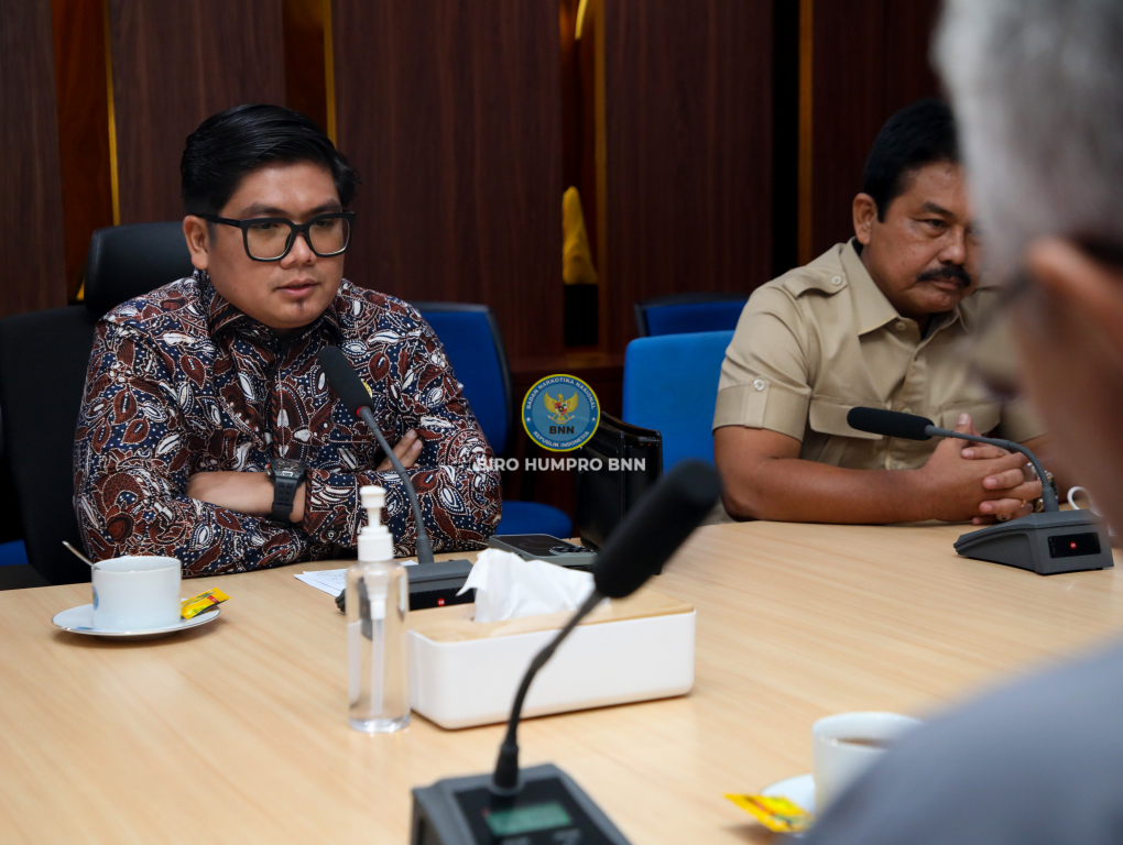 Deputi Rehabilitasi BNN dr. Bina Ampera Bukit di damping oleh Karo Ren Settama BNN menerima Audiensi Komisi A DPRD Tanjung Balai Asahan di ruang Soetomo BNN