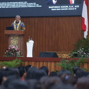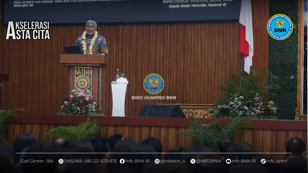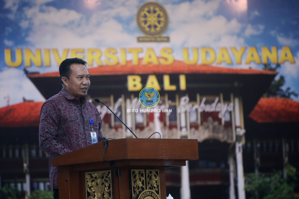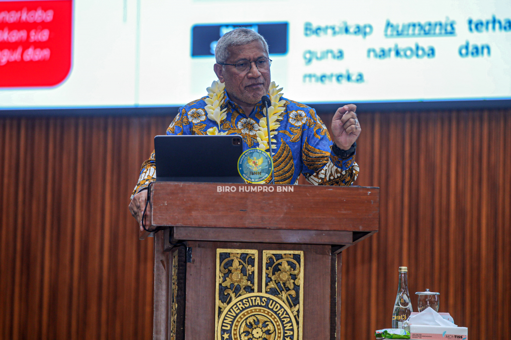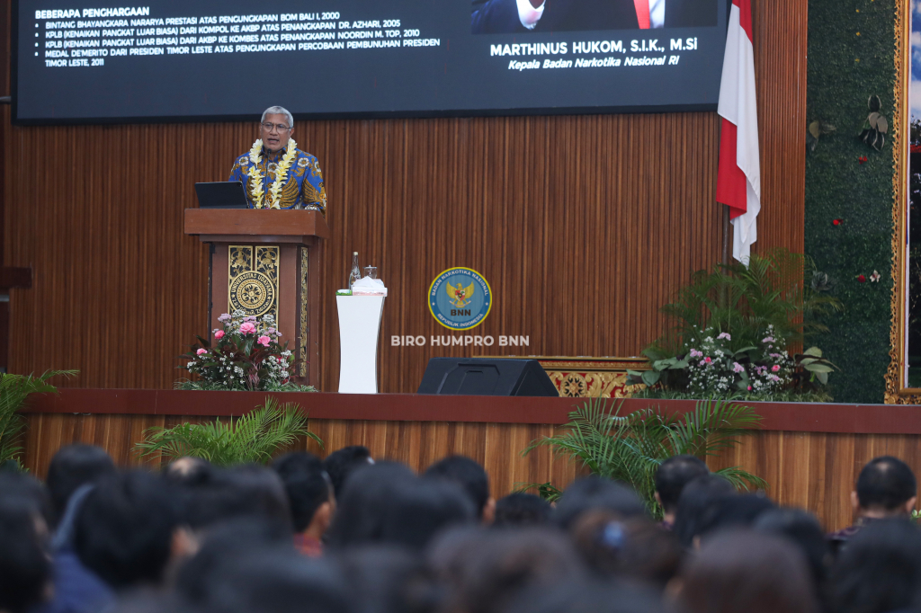 Kepala BNN RI, Marhinus Hukom, S.I.K., M.Si., memberikan kuliah umum di depan ratusan mahasiswa se Provinsi Bali di Universitas Udaya, Bali, Selasa (15/7).