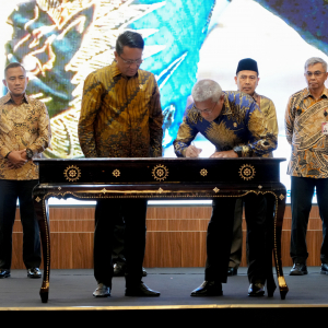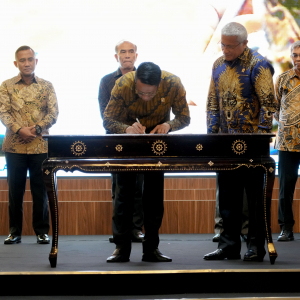Kepala Badan Narkotika Nasional Republik Indonesia (BNN RI) Marthinus Hukom, S.I.K., M.Si., menandatangani Nota Kesepahaman (MoU) dengan Menteri Hukum Supratman Andi Agtas, di Graha Pengayoman Kementerian Hukum, Setiabudi, Jakarta Selatan, pada Jumat (24/1).