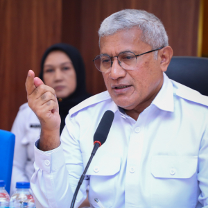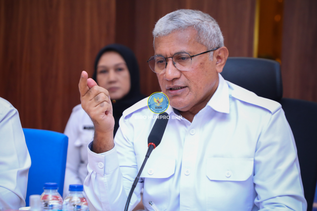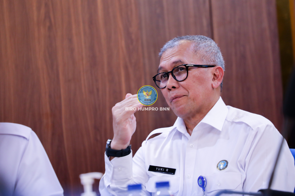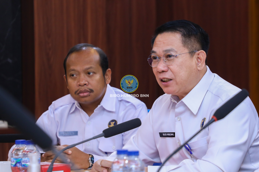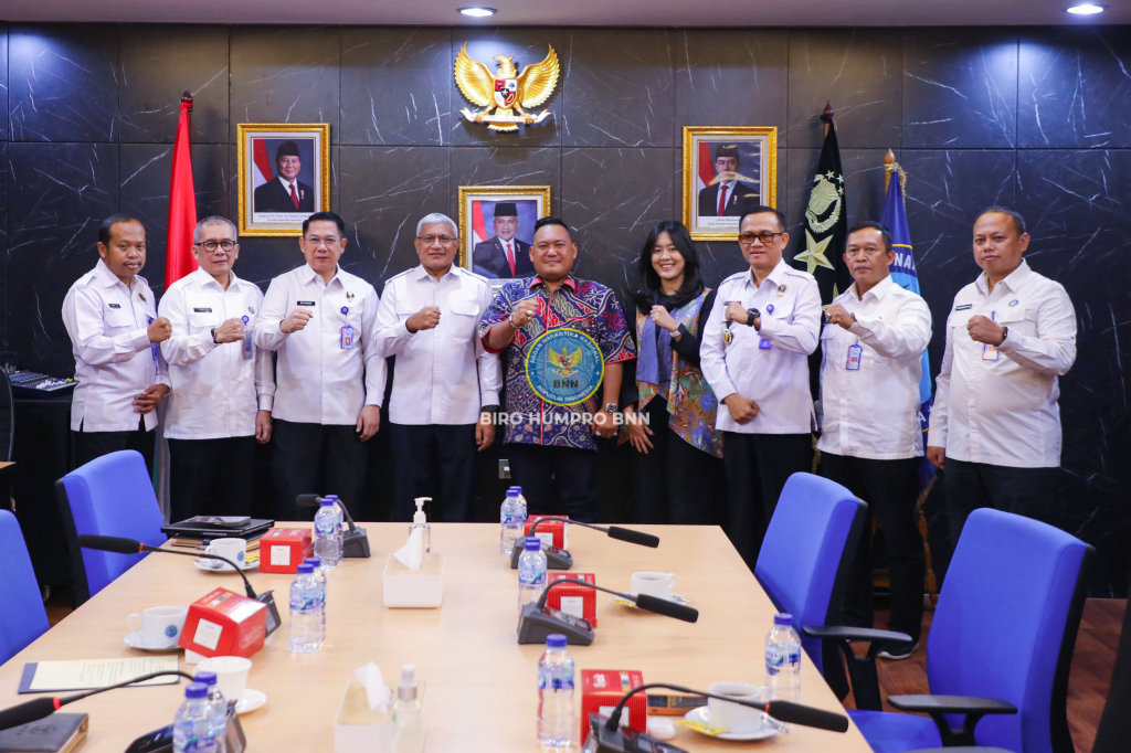 Kepala BNN RI Marthinus Hukom, S.I.K., M. Si yang didampingi oleh Deputi Pencegahan, PLT. Deputi Pemberantasan dan PLT. Deputi Pemberdayaan Masyarakat menerima kunjungan Audiensi dari PT. J&T di ruang rapat Soetomo BNN RI, Senin (28/7).