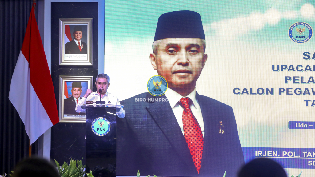 Sekretaris Utama BNN RI, Tantan Sulistyana, secara resmi membuka Pelatihan Dasar Calon Pegawai Negeri Sipil (CPNS) Tahun 2025 di Aula Ki Hadjar Dewantara-Pusat Pengembangan Sumber Daya Manusia (PPSDM) BNN, Lido, Bogor, Jawa Barat, pada Selasa (19/8).