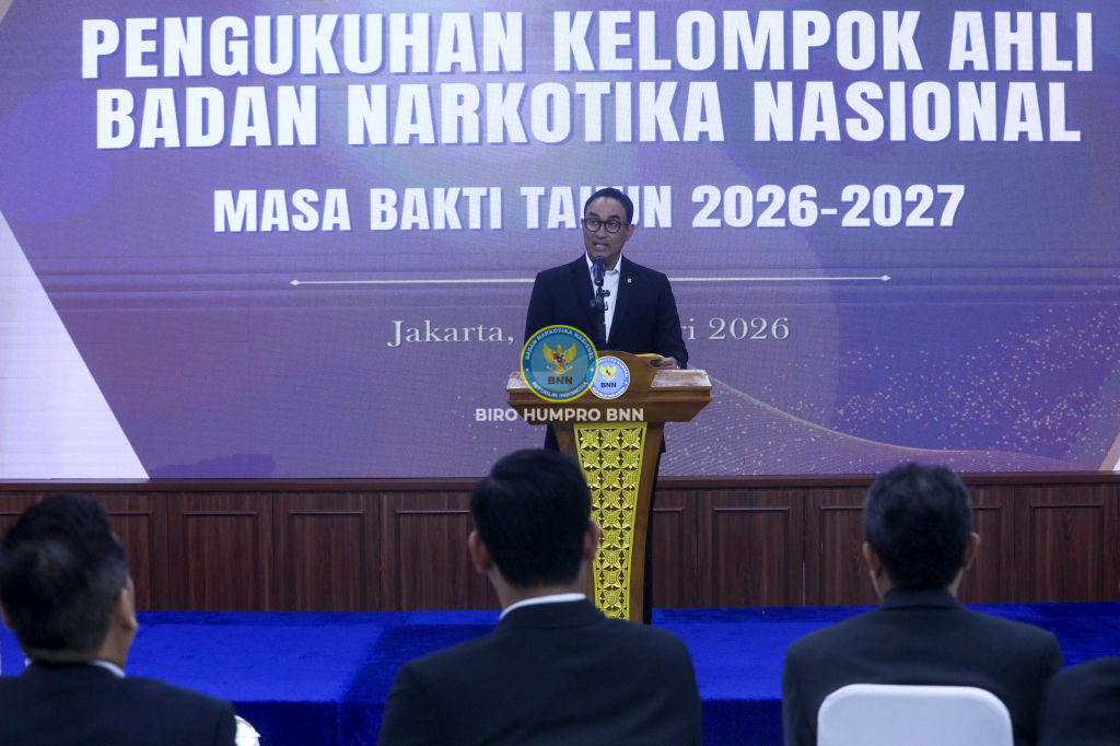 Kepala BNN RI, Suyudi Ario Seto, secara resmi memimpin pengukuhan Kelompok Ahli BNN Masa Bakti Tahun 2026–2027 yang digelar di Ruang Mohammad Hatta, Gedung Tan Satrisna BNN, Cawang, Jakarta Timur, Senin (26/1).