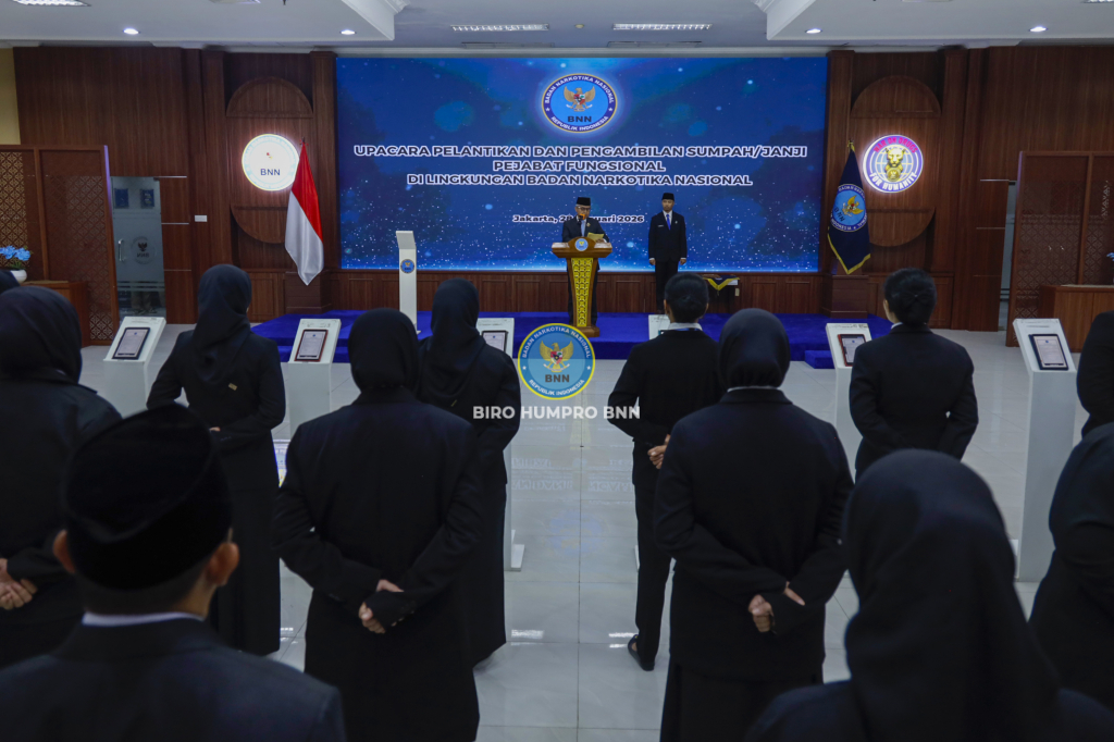28 Jan Pelantikan Jabatan Fungsional By Yan Fauzi r. Moh. Hatta, Sestama BNN RI Tantan Sulistiyana Melantik Pejabat Fungsional di lingkungan BNN, BNN di ruang Moh. Hatta Bagikan